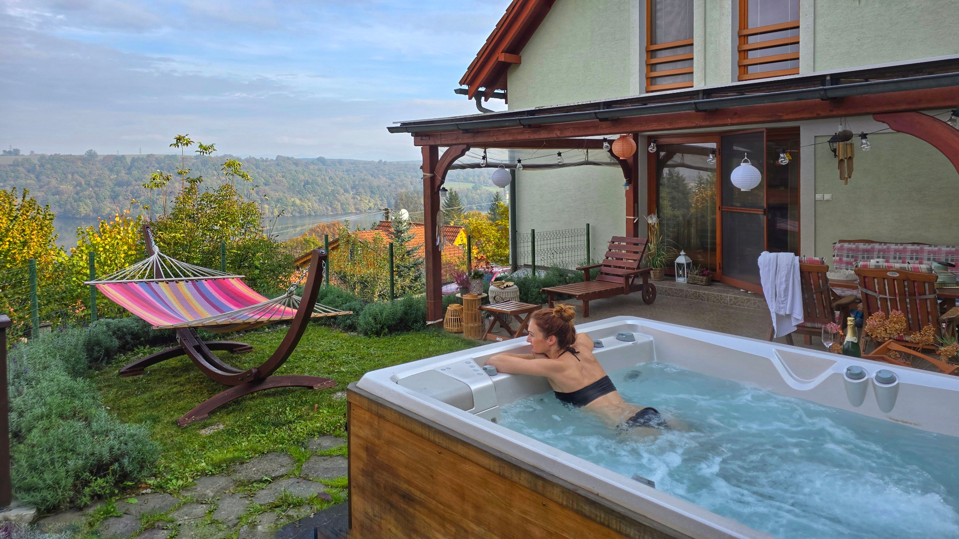 Predstavte si, ako si vychutnávate nádherný výhľad z vyhriatej vírivky, kde vás obklopuje pokoj prírody. Ležíte, relaxujete a cítite, ako stres mizne s každou bublinkou. Po chvíli, strávenej v horúcich parách vo vlastnom wellnes domčeku, si vychutnáte pohár osviežujúceho nápoja priamo na terase s nádherným výhľadom na vodnú hladinu. Potom prichádza čas na pohár kvalitného vína z vínnej pivnice . Vychutnávate si posedenie s priateľmi na terase alebo stolný futbal v priestrannej obývačke, smiech, dobrá nálada a výhľad na vodnú nádrž, ktorý podčiarkuje výnimočnosť tohto miesta.